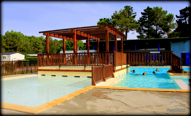 Kanpinak igerileku txiki bat dauka. Ez da beste kanpinetan egoten den igerileku harrigarri horietakoa eta ez du txirristarik, egia esateko, Landetan ikusi dugun xumeenetarikoa da. Bere alde, ordea, polita, zaindua eta umeekin joateko oso atsegina dela esan dezakegu; bertako ura beti epel dago eta.