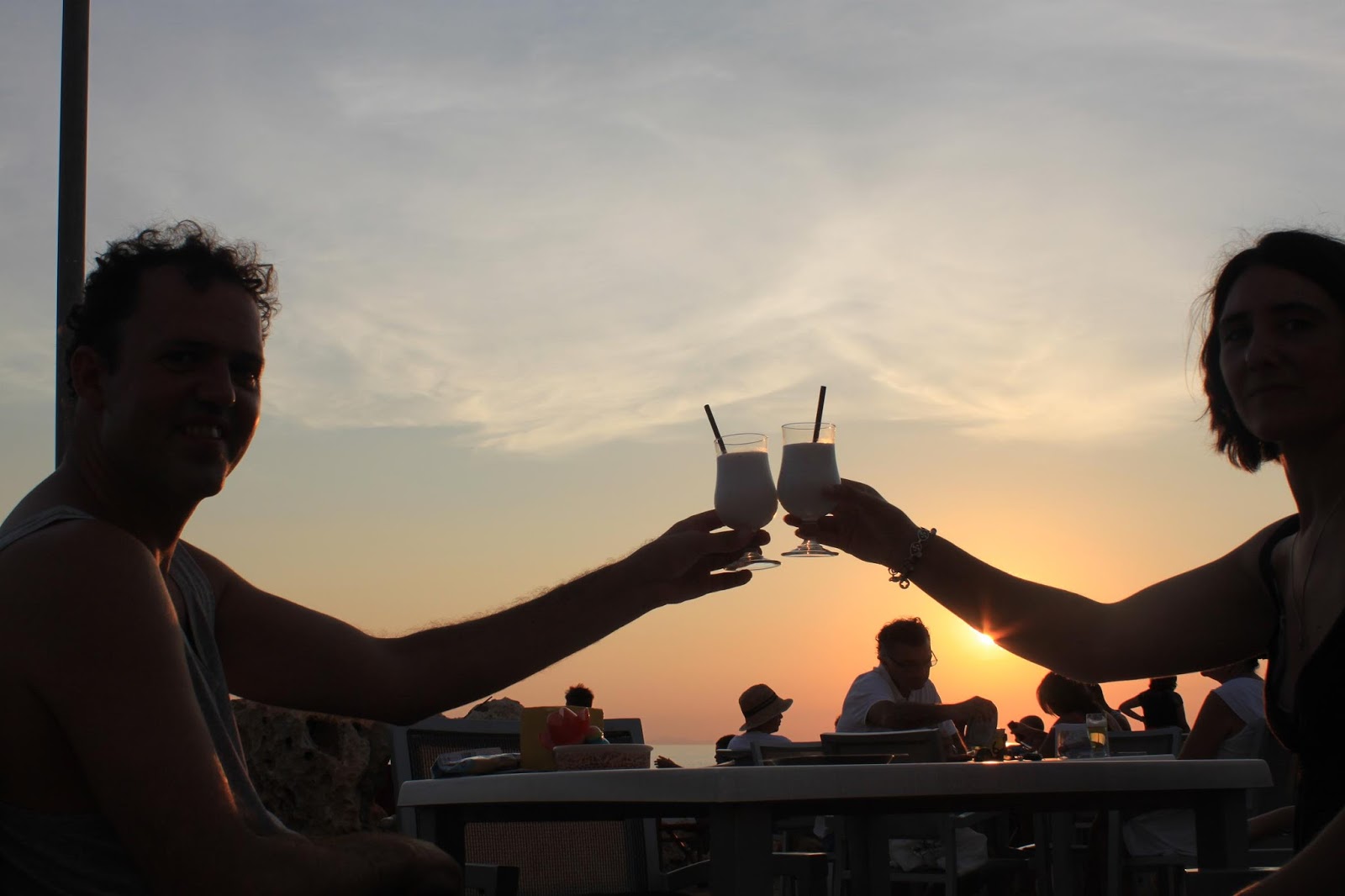 Dejamos Ciudadela sin ninguna pena y nos dirigimos a ver la puesta de sol al Cap D’ Artrutx. Nos sentamos en la terraza y tras pedir un par de «Pomadas» vemos caer el sol. ¡Genial!