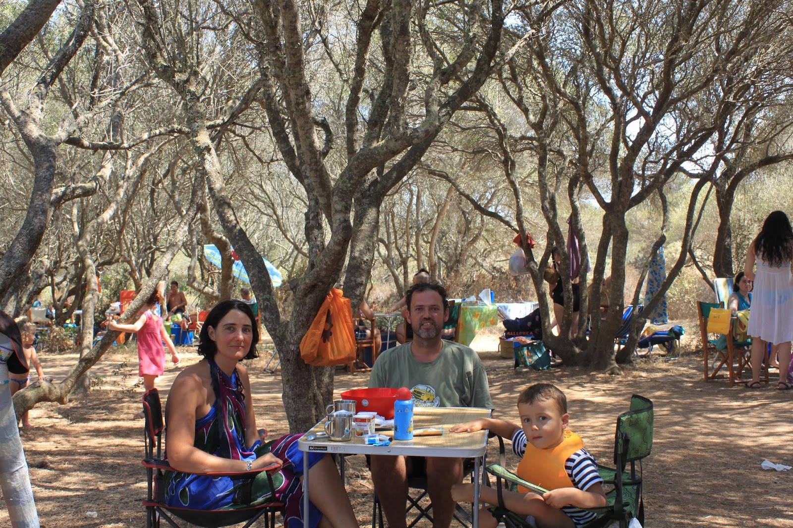 Para las 9 de la mañana el aparcamiento se llena y familias enteras con sillas, mesas, sandias, coca-coleras y los tapers más grandes que yo jamás he visto sentaban campameto bajo la arboleda de la playa.