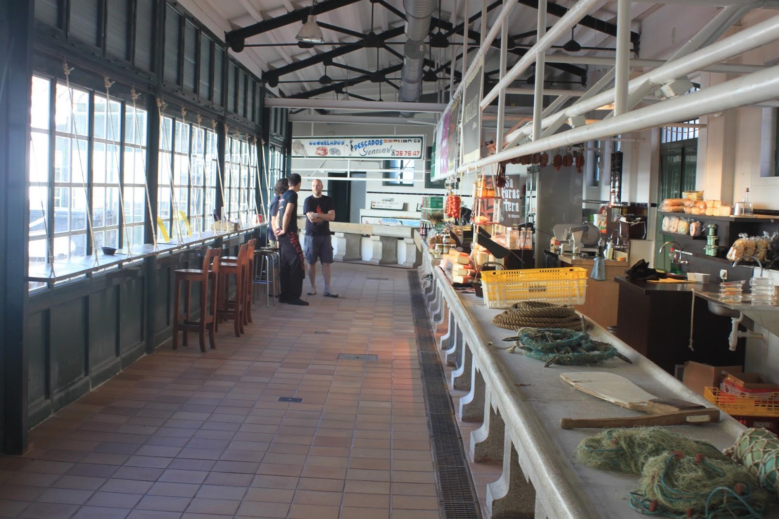 Callejeamos y nos asomamos a un par de miradores que dan al puerto para sacar fotos (Mirador de la Plaza es uno de ellos). Desde ahí observamos alucinando el pedazo crucero que está atracado en el puerto. Bajamos hacia el «Mercat del Peix»: es una mezcla de pescadería, bar de pintxos y restaurante con bodega de quesos y delicatessen incluida que nos sorprende gratamente. Como es lunes no hay casi pescado.