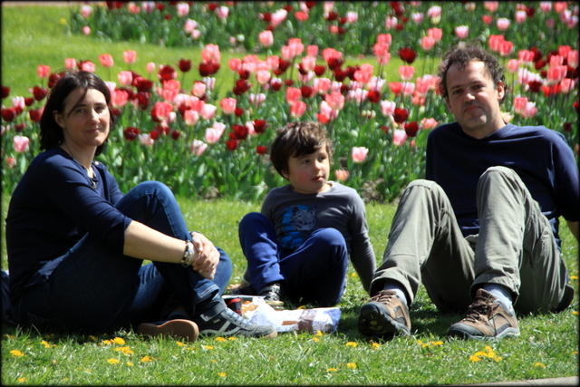 El parque cuenta con varios restaurantes, pero qué queréis que os diga, aquí lo que nos pide el cuerpo es tirarse en la hierba, extender un manta y sacar de la mochila el pan, queso, pate, unas patatas fritas, fruta, zumos… y comer como las lagartijas, al sol. ¡Qué gozada!Eso sí, sed respetuosos con los tulipanes, pasó un coche patrulla de «la police» para ver que nadie aplastaba uno solo de los preciosos tulipanes que engalanaban el jardín cercano.