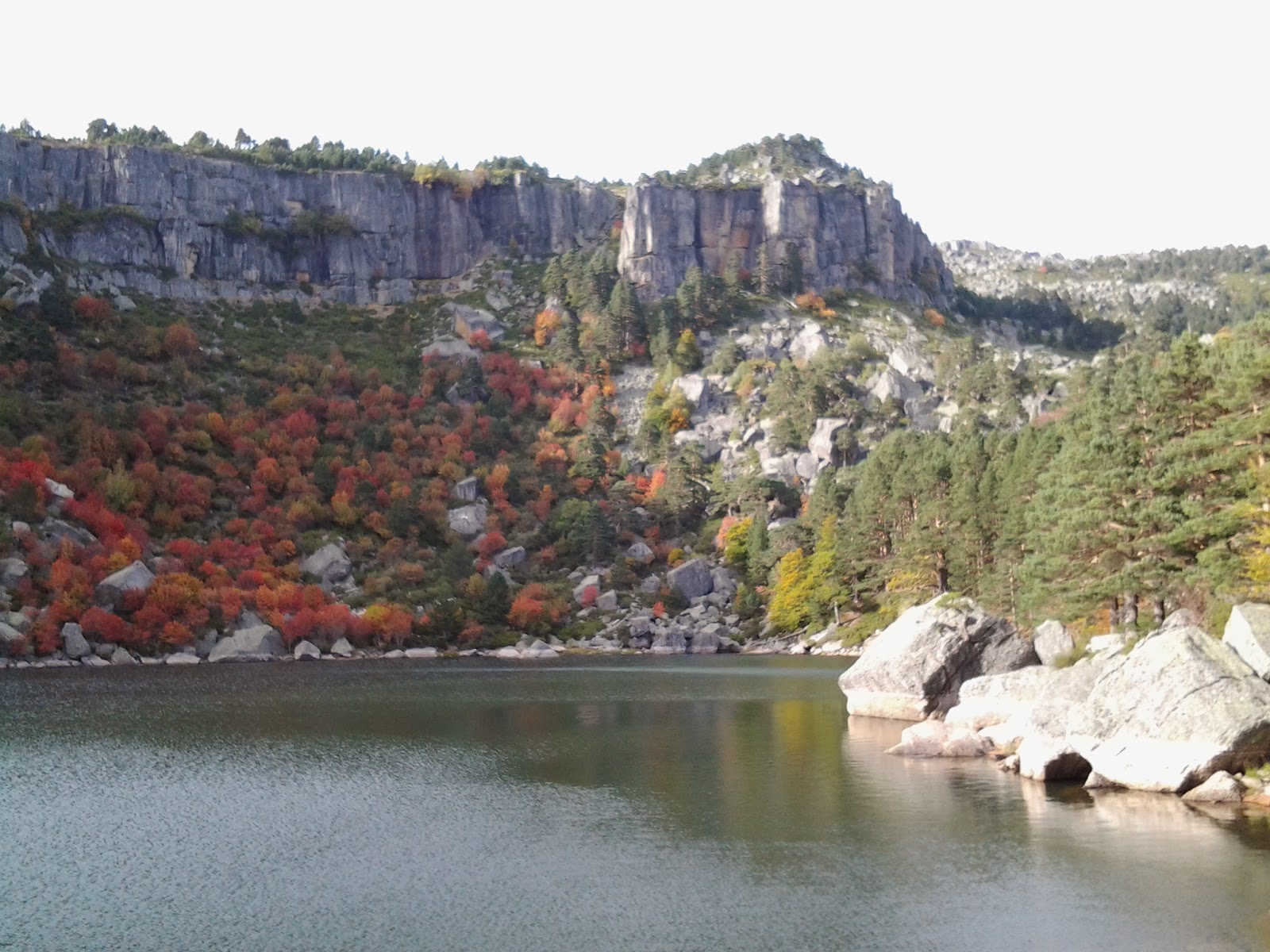 Lagunaren inguruan zuhaitz koloretsuek udazkenaz jantzita zeuden.