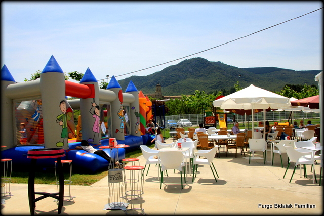 Nos instalamos para pasar el fin de semana en el área de autocaravanas de Aiegi, una pequeña localidad pegada a Lizarra-Estella. Su mayor atractivo es estar situada a escasos metros del Centro Termolúdico Ardantze, que demás de las piscinas tiene una cafetería con un hermoso espacio lúdico en su exterior para los más pequeños compuesto de parque, hinchables y cama elástica; resumiendo, el paraíso para un pequeño de 5 años como el nuestro.Y no, no hay que abonar ninguna cantidad por el uso de todo esto; basta con hacer las consumiciones correspondientes en la cafetería y los niños estarán felices y los adultos, encantados.Ummm…terraza, cerveza, sol y un poco de relax.
