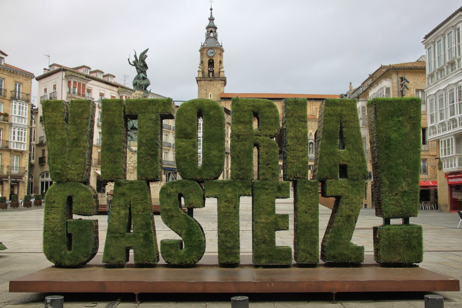 Iritsi bezain pronto eta Andre Mari Zuriaren Plazara sartu aurretik, Agustin Ibarrolaren “La mirada” eskulturarekin topo egin genuen. Gasteiztarrek “Alua” ezizenez bataiatu dute. Ez dute gehiegi maite, ezta?