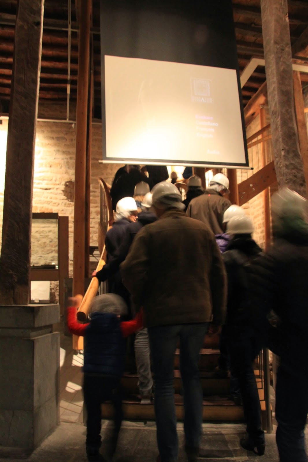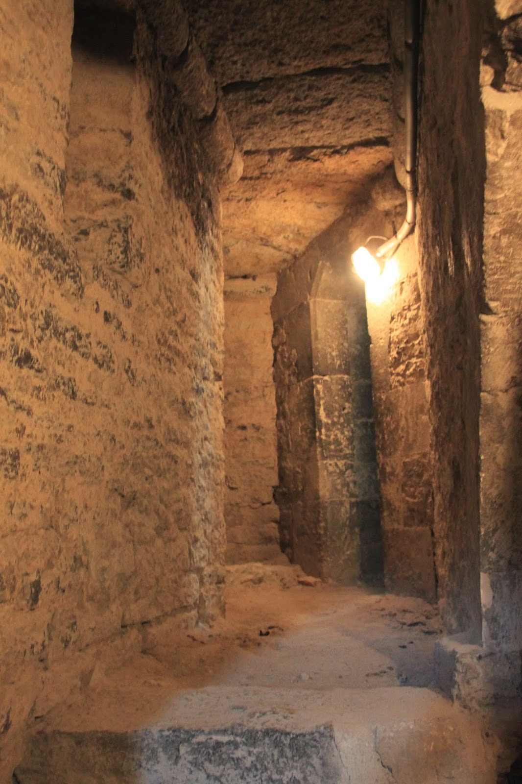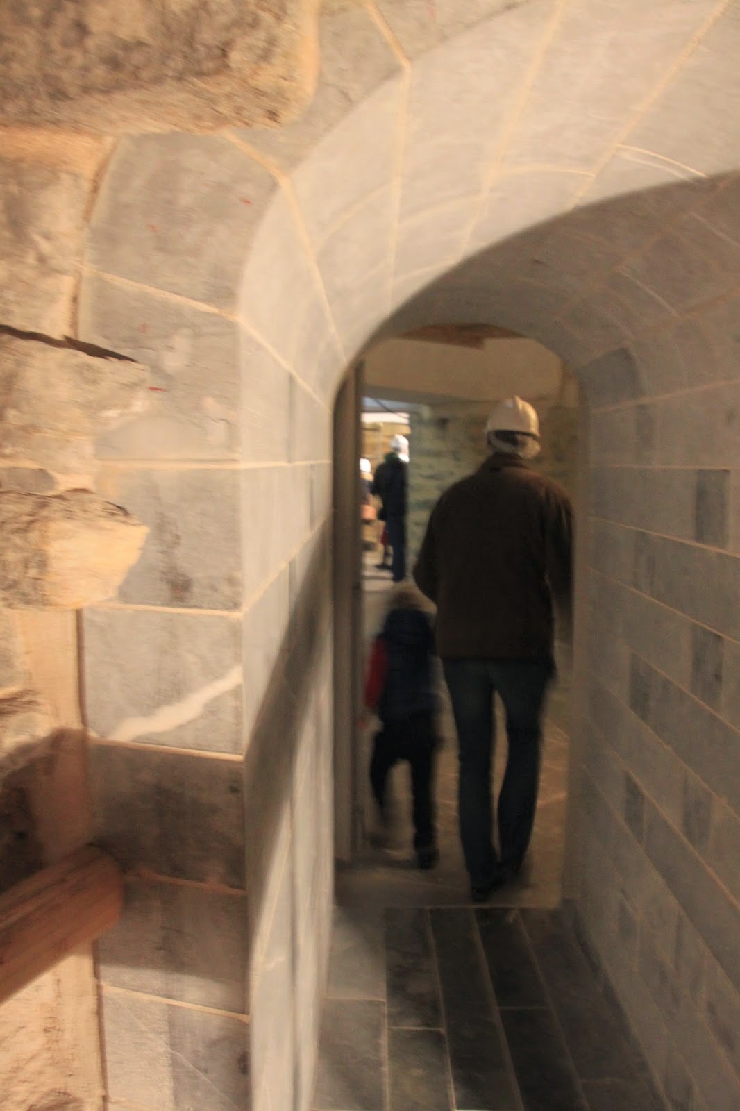 Harrizko eskailera eta pareten artean igo ginen.
