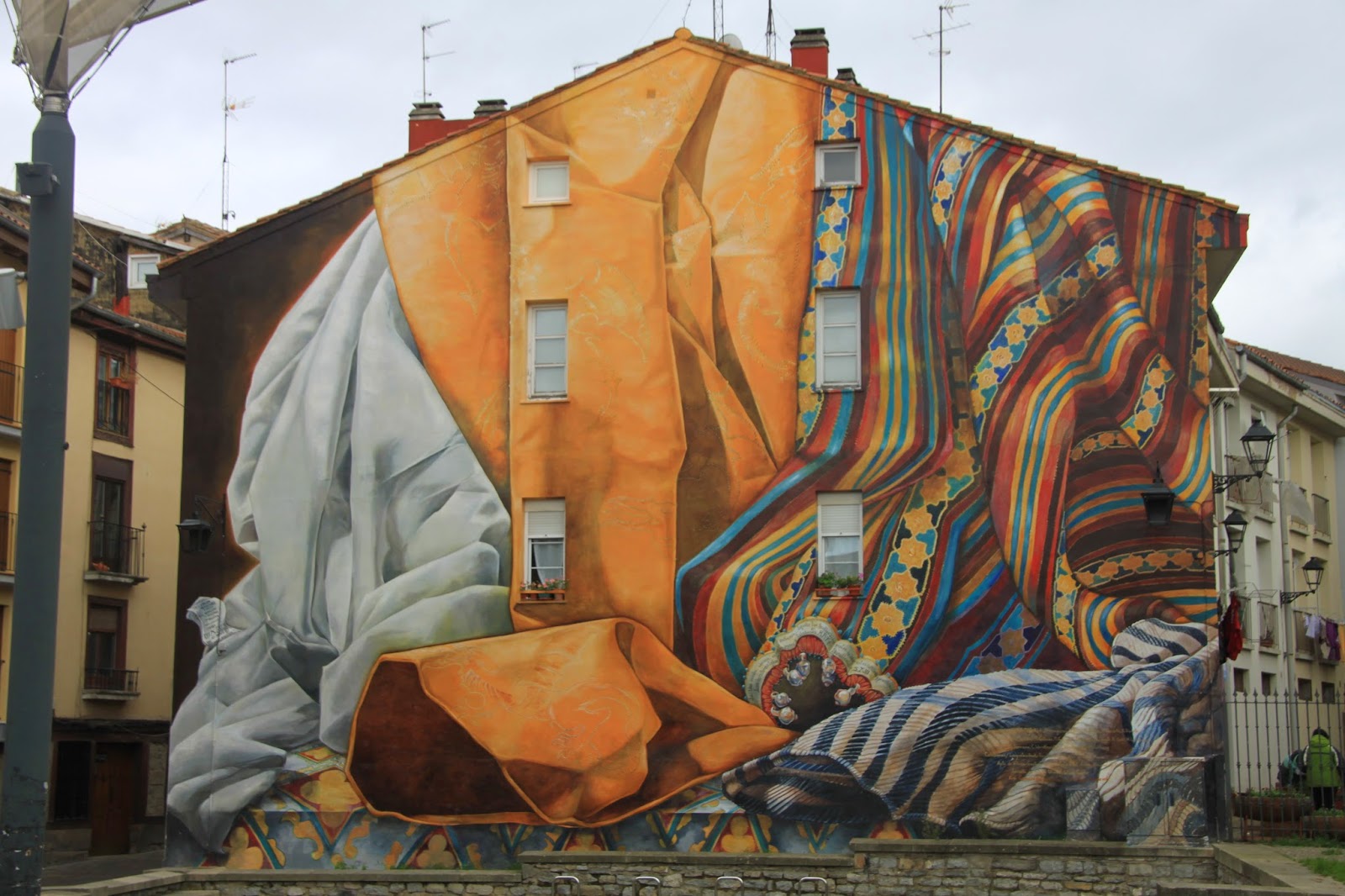 Burbuileria plazako “Denboraren harira” horma-irudia.Begiak ondo ireki eta berreskuratu diren horma zaharrei erreparatu!