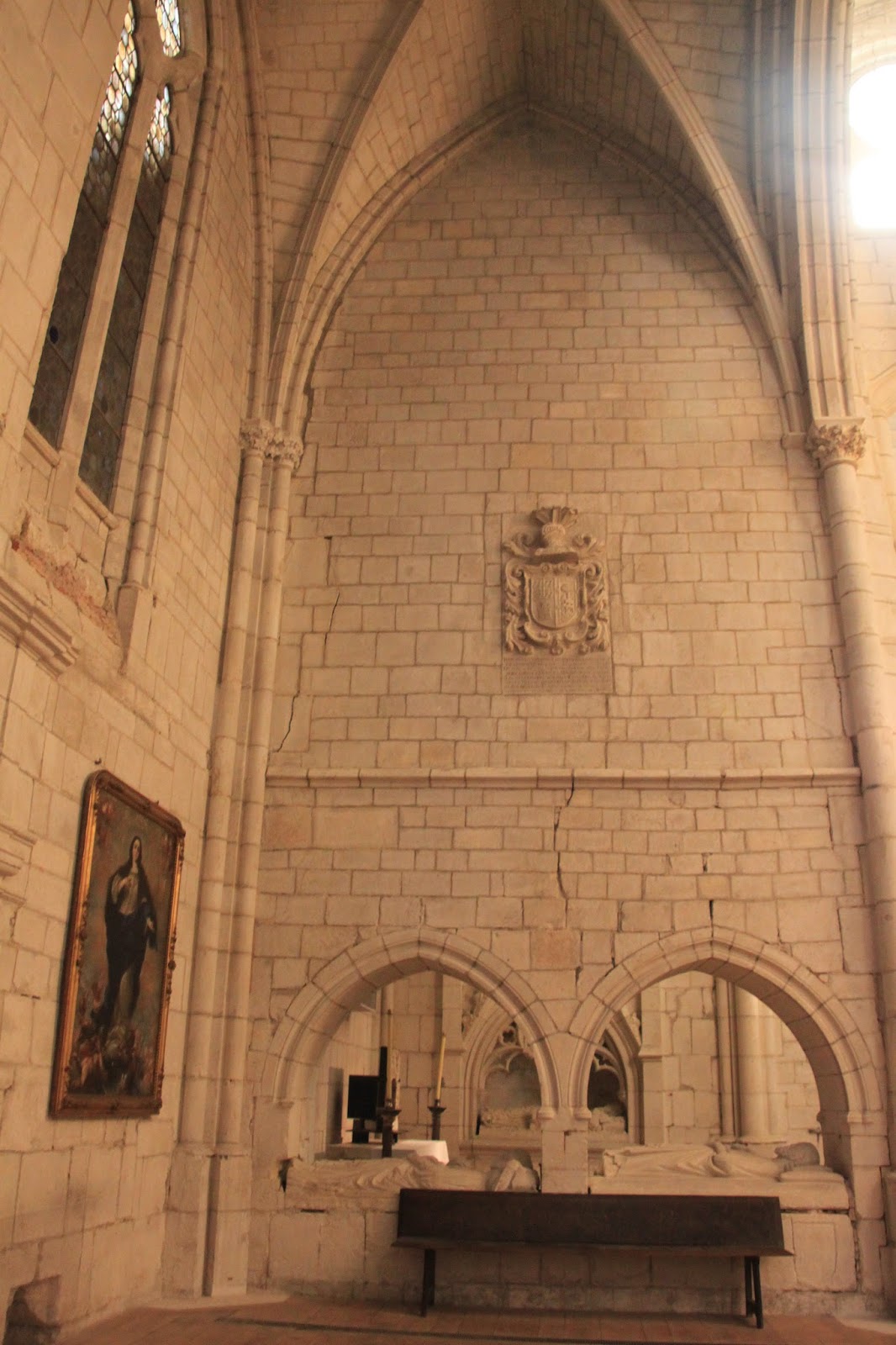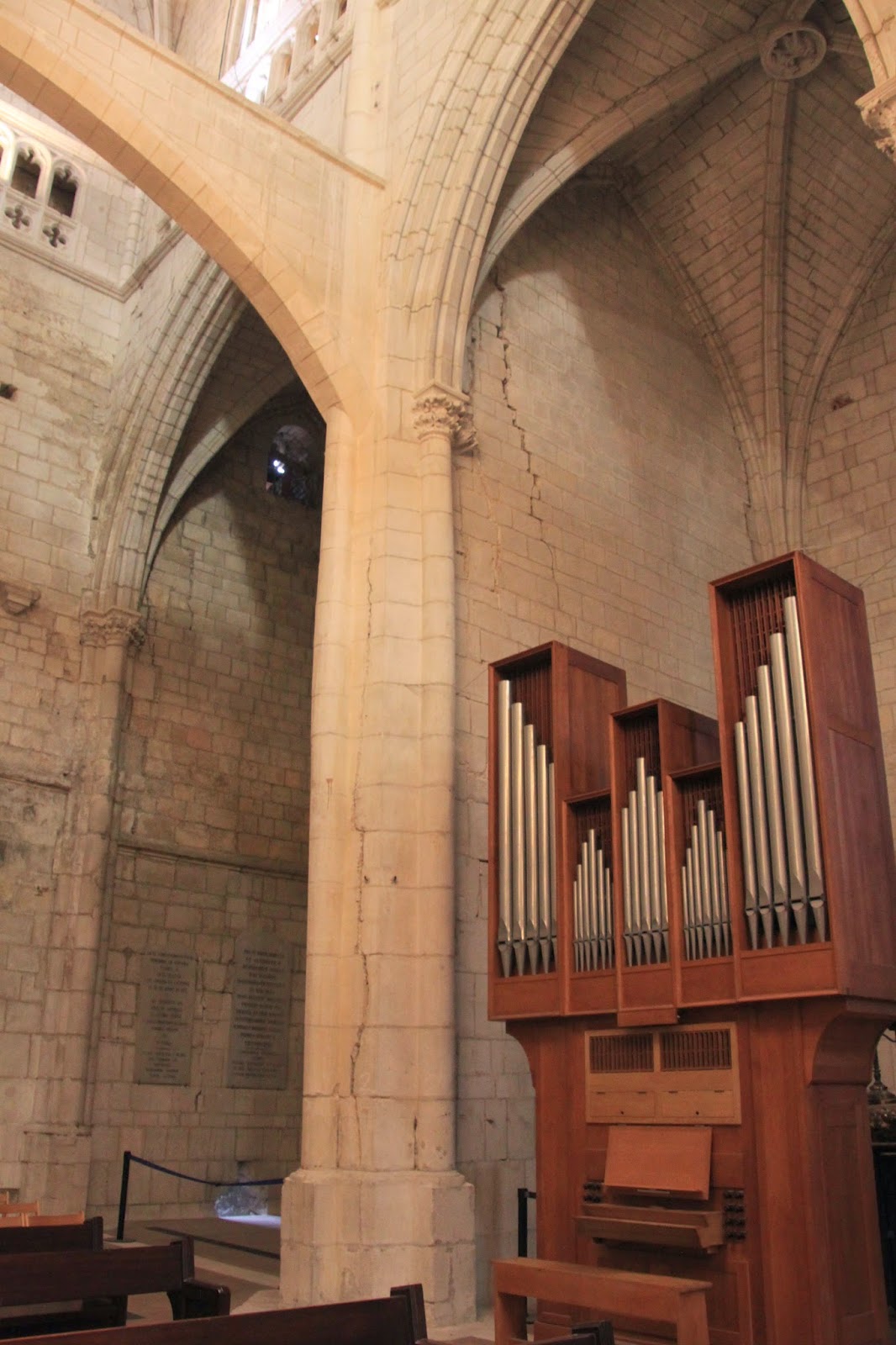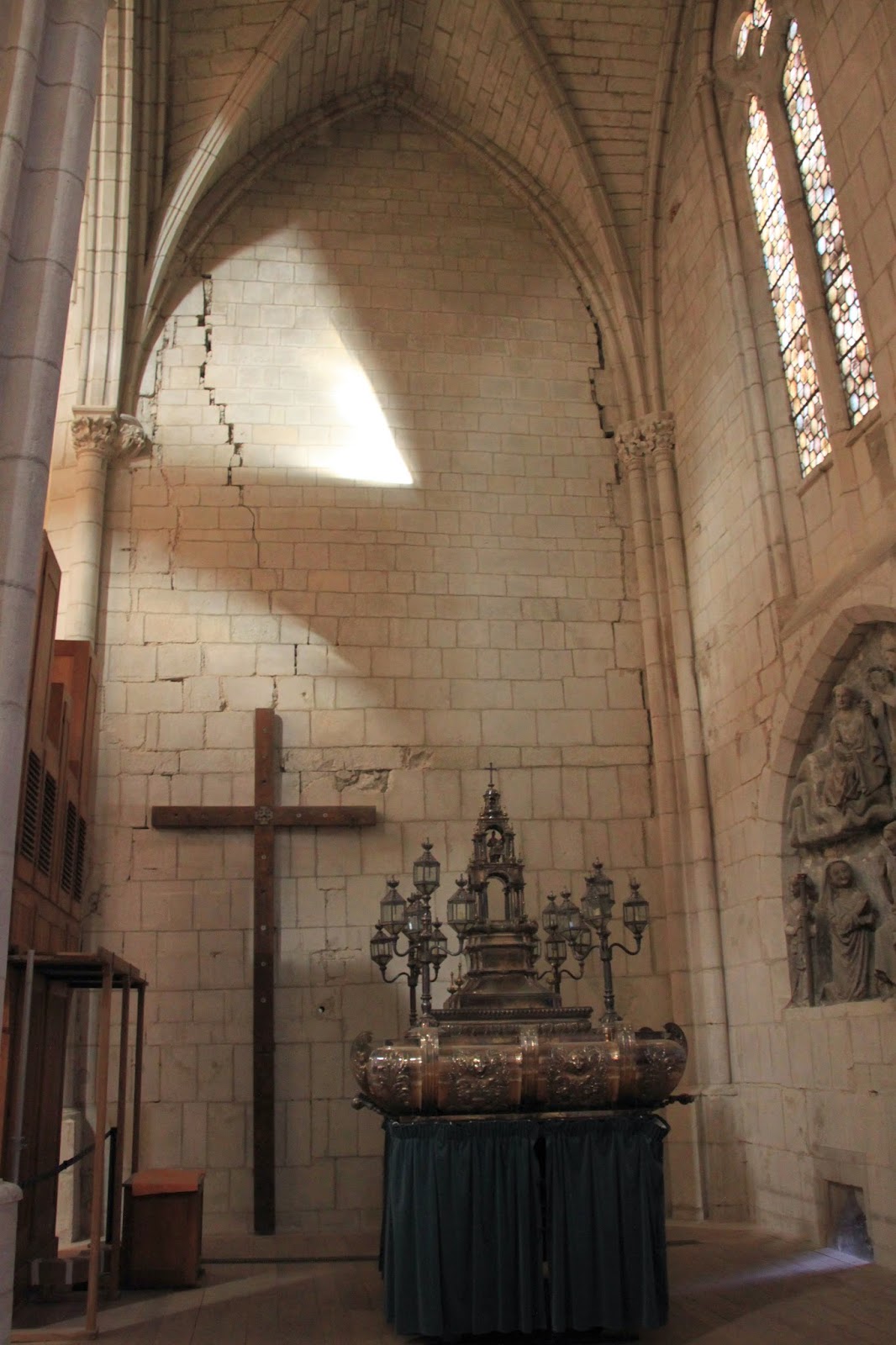 Katedralaren barruko aldera pasa ginenean hormetako pitzadurak erakutsi zizkiguten.
